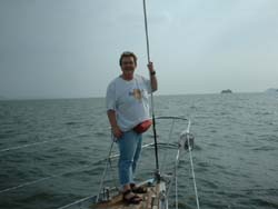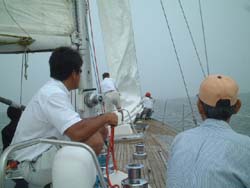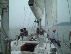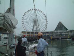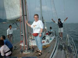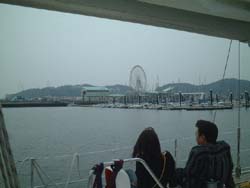 Japan May 2003The 2 weeks were fairly intensive work wise but I did manage to take some photos and go sailing which was fantastic. The sailing was in Gamagori where there's a new Marina complex called Laguna - The sailing boat was originally bought during Japan's bid for the America's cup before the bubble burst! It's now used to take tourists out in the bay sailing which was brilliant fun. I went back for a second go on the Sunday!! There's a bustling fish market and a water park which I gave a miss (it might be fun in July when the swimming side is open) I got to see an other ship for work a massive Car Transporter - I've include a photo of me on board all togged up in SARS protection!