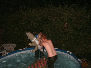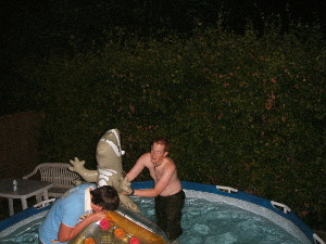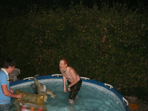 Rob blows up lilo whilst battered by Croc!
