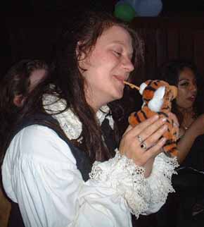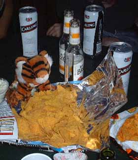 Tiger finds a friend to share his twiglet with!